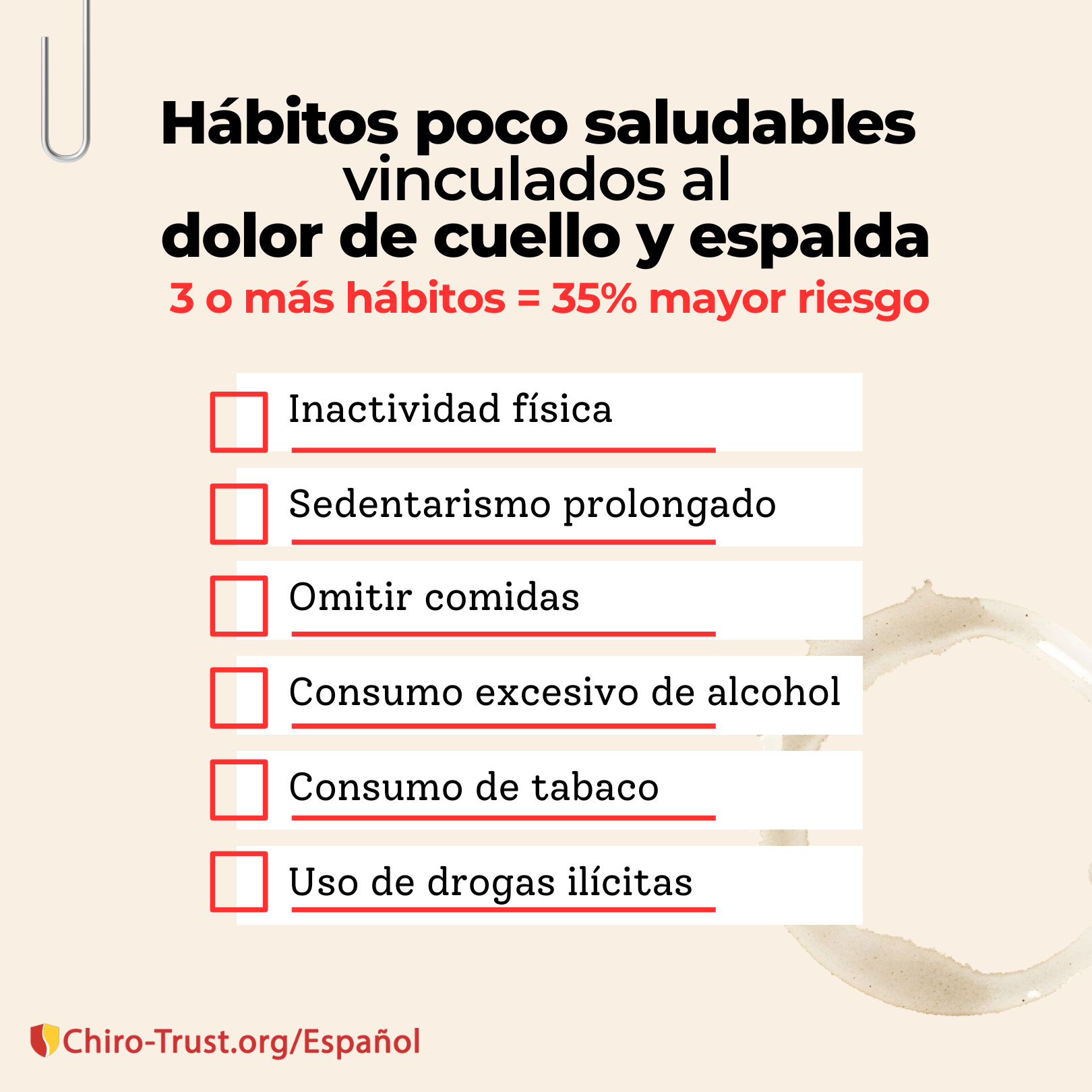 Miembro de ChiroTrust® han asumido el Compromiso de ChiroTrust: "En la medida de mis posibilidades, acepto proporcionar a mis pacientes atención quiropráctica convencional, conveniente y accesible. No usaré innecesariamente planes de tratamiento y/o terapias a largo plazo".